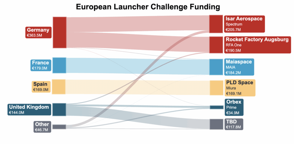 Other nations were less generous, with France and Spain spending all of their funds to back local competitors: €179M to Maiaspace and €169M to PLD Space, respectively.
