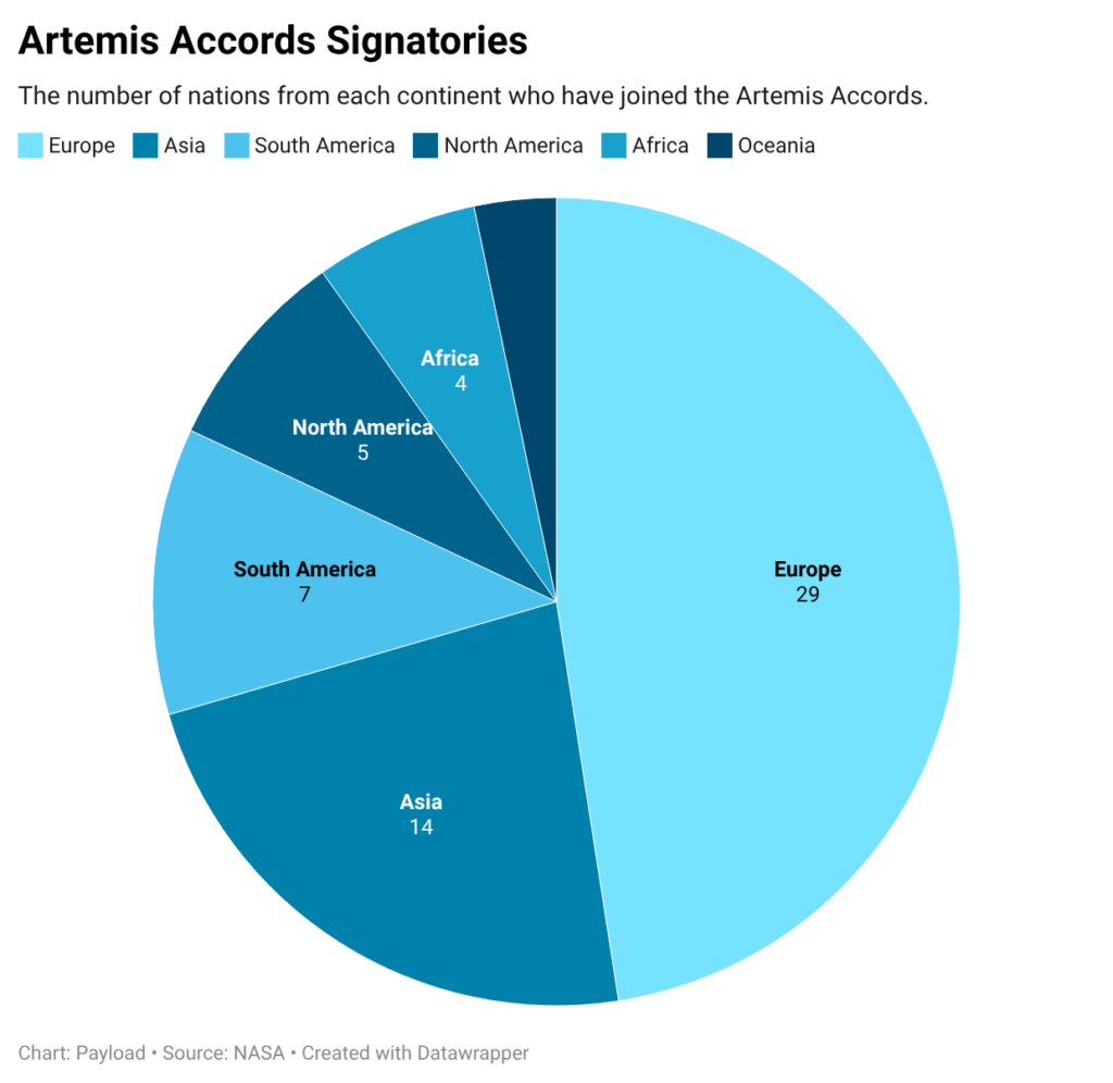 What’s next: There’s still room for the accords to grow its number of signatories in the years to come. Just 31% of UN member states—60 out of 193 nations recognized by the UN—have signed onto the agreement. Even though every nation doesn’t have a space program, US officials have said that non-spacefaring nations, many of whom rely on data collected in orbit, deserve a seat at the table when discussing the future of space exploration (though no one has said it’s a goal to have every nation sign on.)
