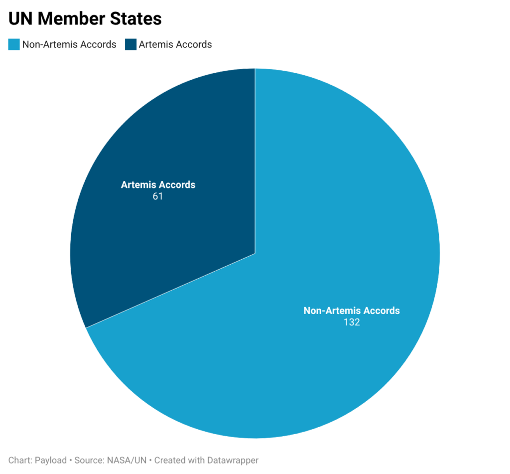 A quick reminder: The US led the establishment of the Artemis Accords in 2020. Nations who sign on commit to exploring space in a peaceful, transparent, and sustainable way.